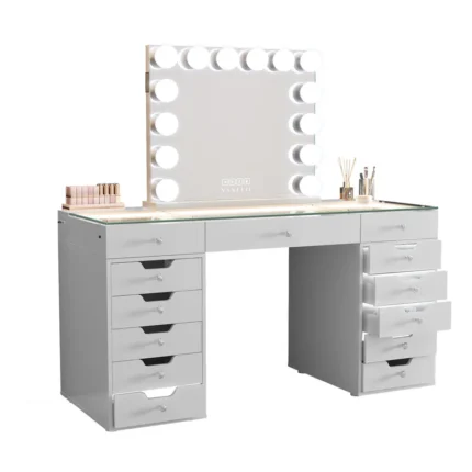 VANITII Eva Vanity Desk – 13 Storage Drawers with Full Light & RGB