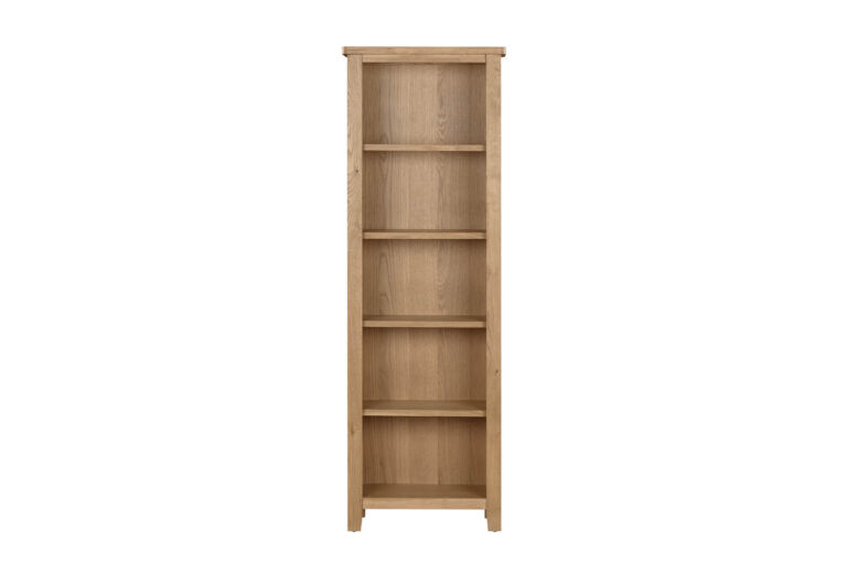 Marsden Tall Bookcase in Natural Oak combines country chic style with practical functionality. Featuring a warm Oak and Oak Veneer finish, it offers generous vertical storage while highlighting the natural beauty of the wood. With clean lines and a timeless design, it's a versatile piece that adds charm and character to any living or office space.