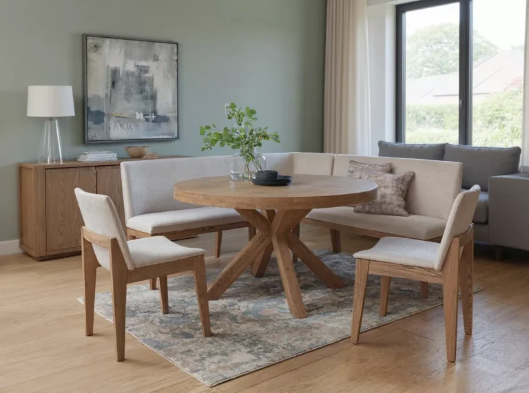Falun Round Dining Table in Smoked Oak – a stylish centrepiece for your dining area. With its contemporary design and oak veneer tabletop, this table adds a touch of modern elegance to any space. Supported by solid oak legs, it combines durability with sophistication, making it the perfect choice for your home.