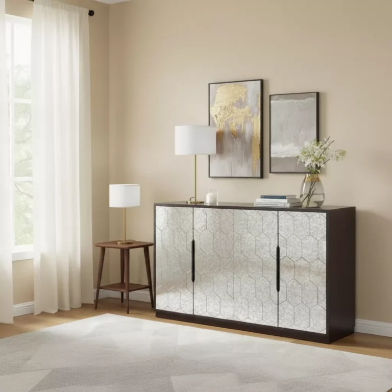 This unique fusion of Grey Truff Bard and sturdy steel accents creates a striking piece that not only adds style to your space but also offers ample storage.