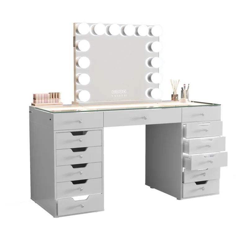 VANITII Hollywood Vanity Desk – 13 Storage Drawers