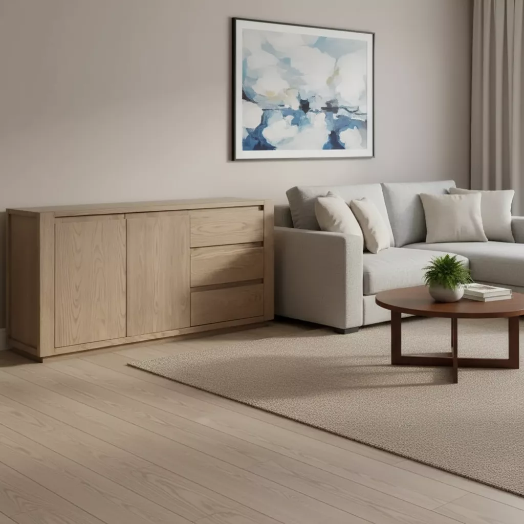 Falun Sideboard in Oak – a sleek and modern addition to your living space. Crafted with oak veneer, this sideboard boasts a contemporary design that effortlessly complements any decor style. Elevate your home with the Falun Sideboard, offering both style and functionality for your storage needs.