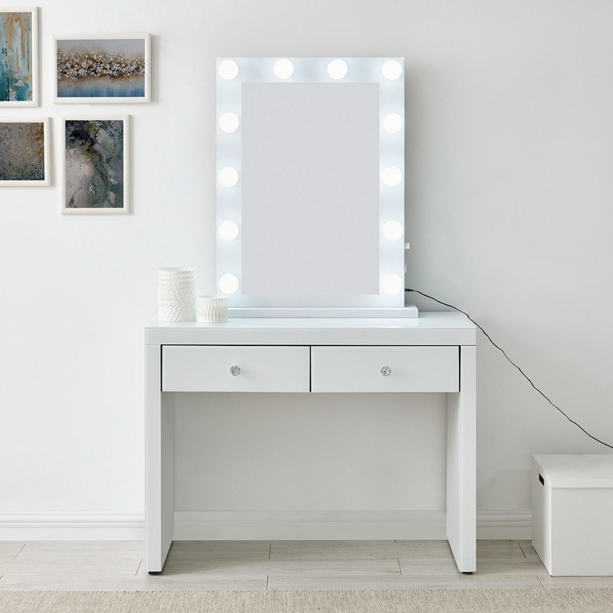 Hollywood White Console & Desktop Mirror with Bluetooth Speaker