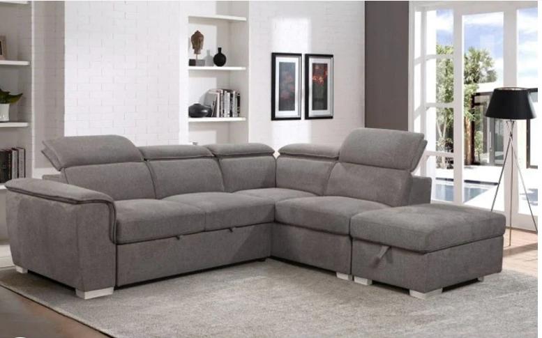 Malta Fabric Corner Sofa has mid-grey tactile fabric upholstery, silver effect ‘stub’ feet, and adjustable headrests. The Malta is a versatile sofa and sofa bed option and is very comfortable, even as a sofa alone; the quality is fantastic value for money; it is on display in-store