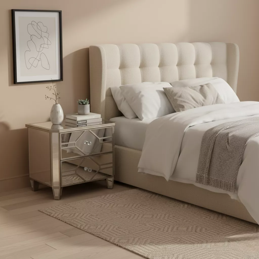 The Rosa is an opulent collection for a luxe look in your home. Its mirrored panels reflect light into the room and add elegance throughout.