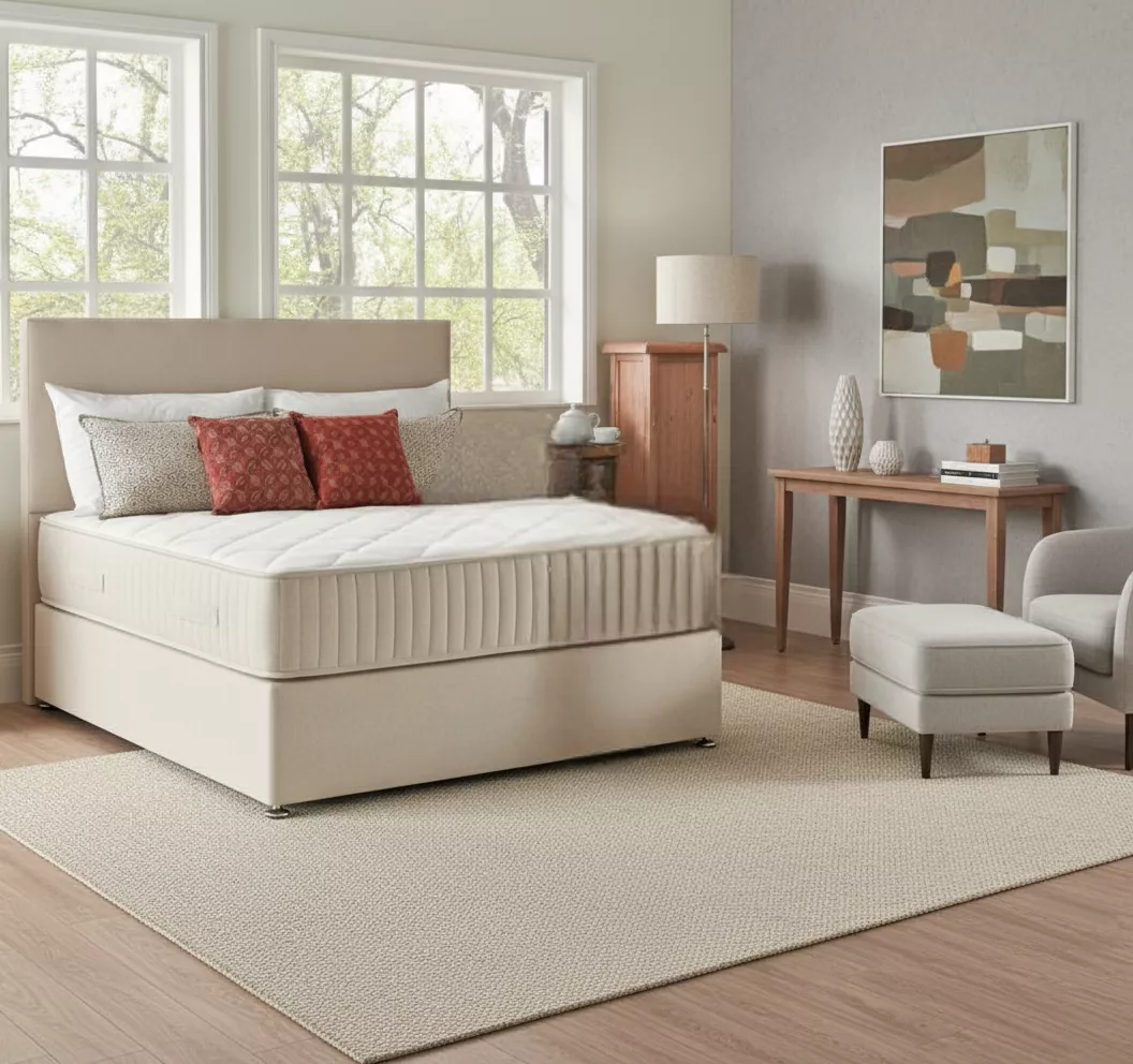 For a medium, to firm support, this mattress offers a superb combination of comfort & support from our RespaTech Ortho Spring System. Giving an overall orthopedic feel with extra strength frames for durability. (Fabric Dundee, Beige) (Soft Furnishings, Bedeck 1951)