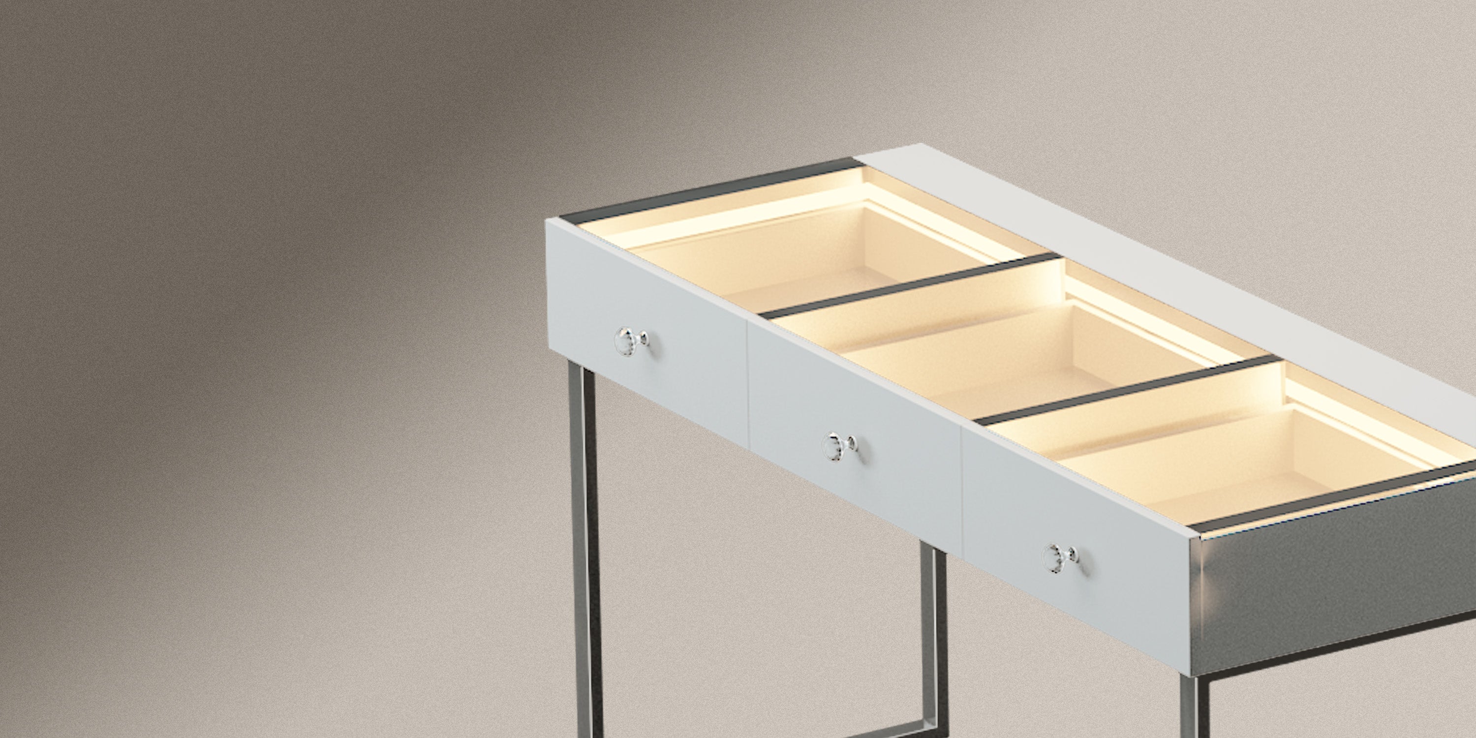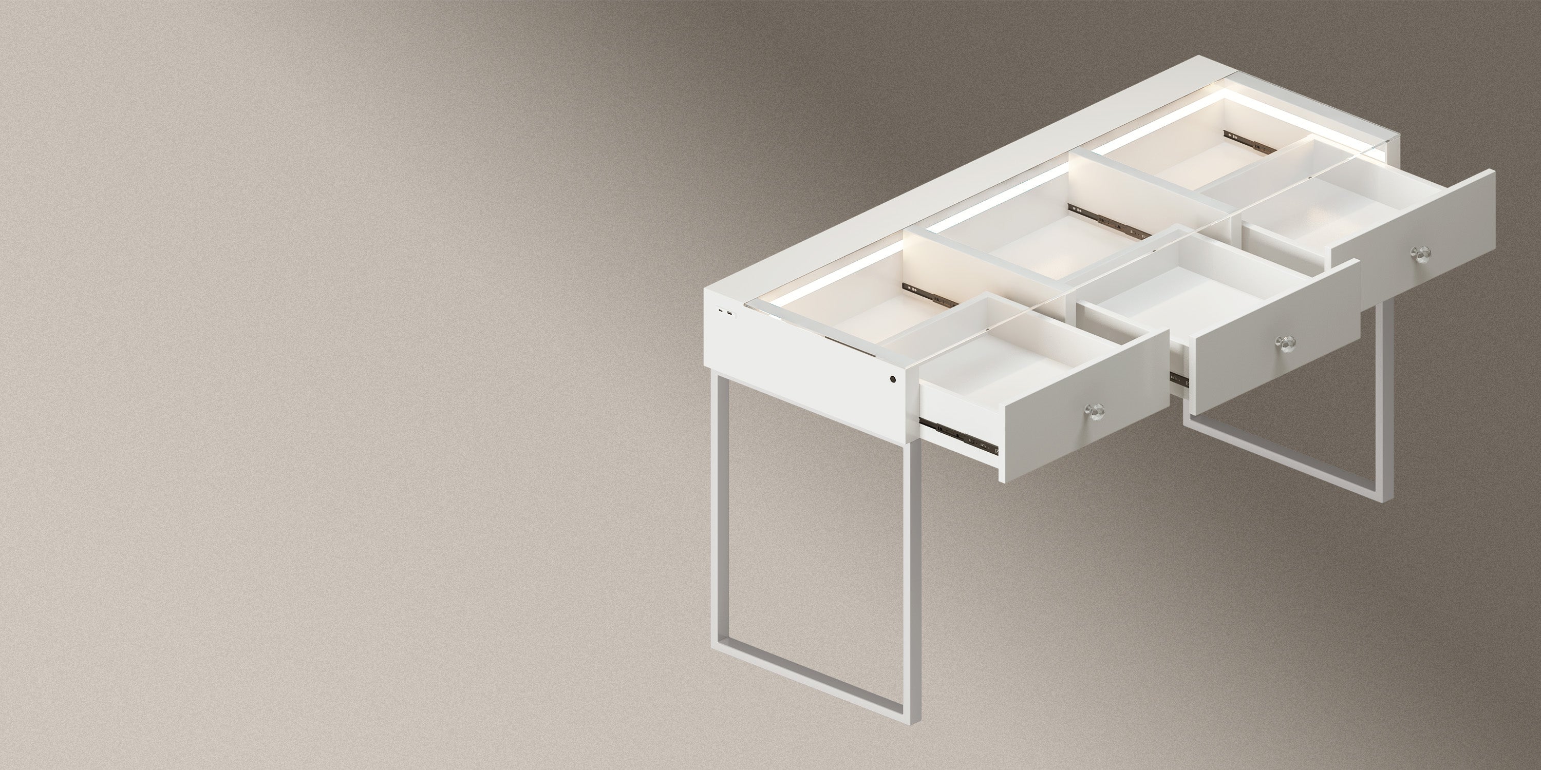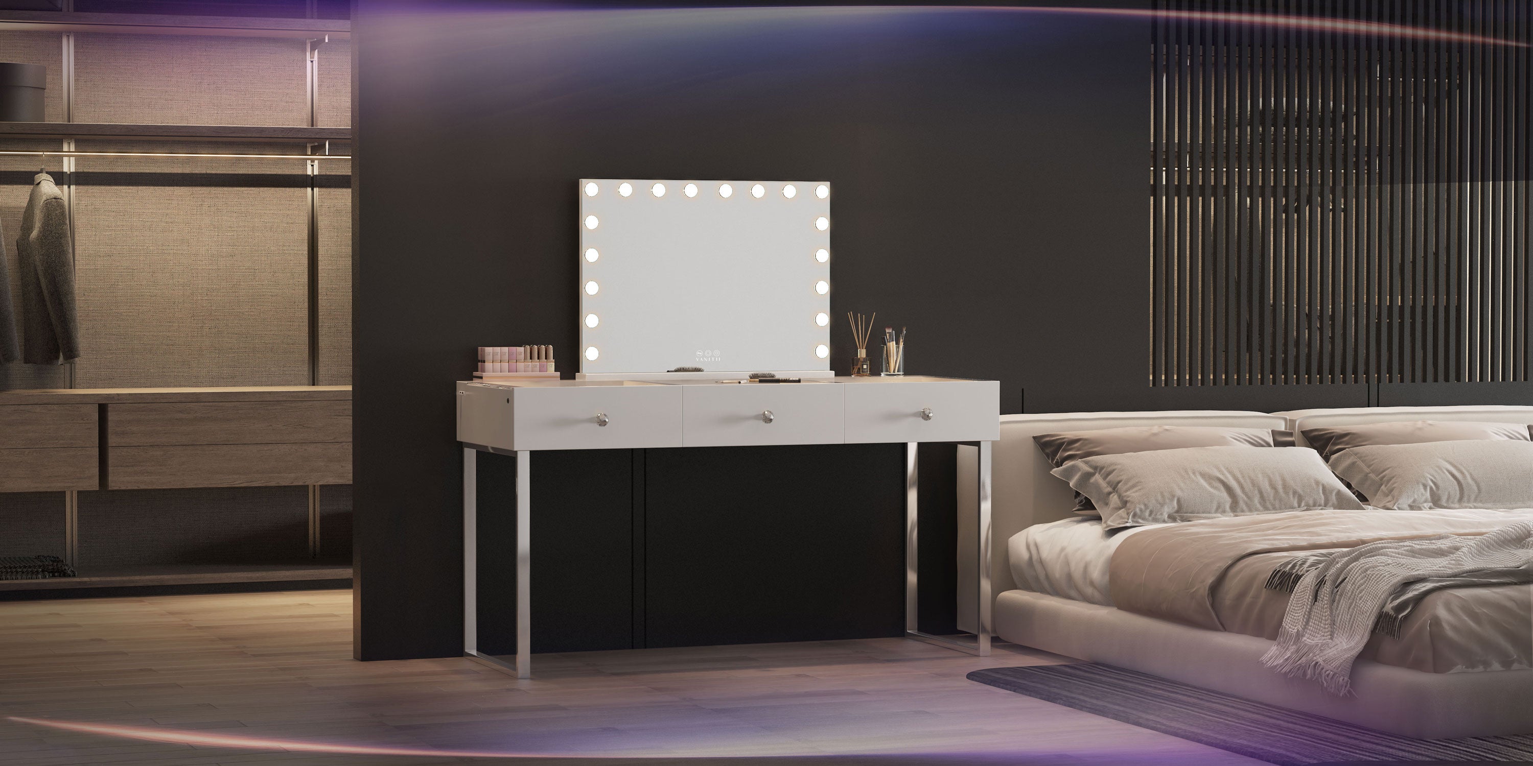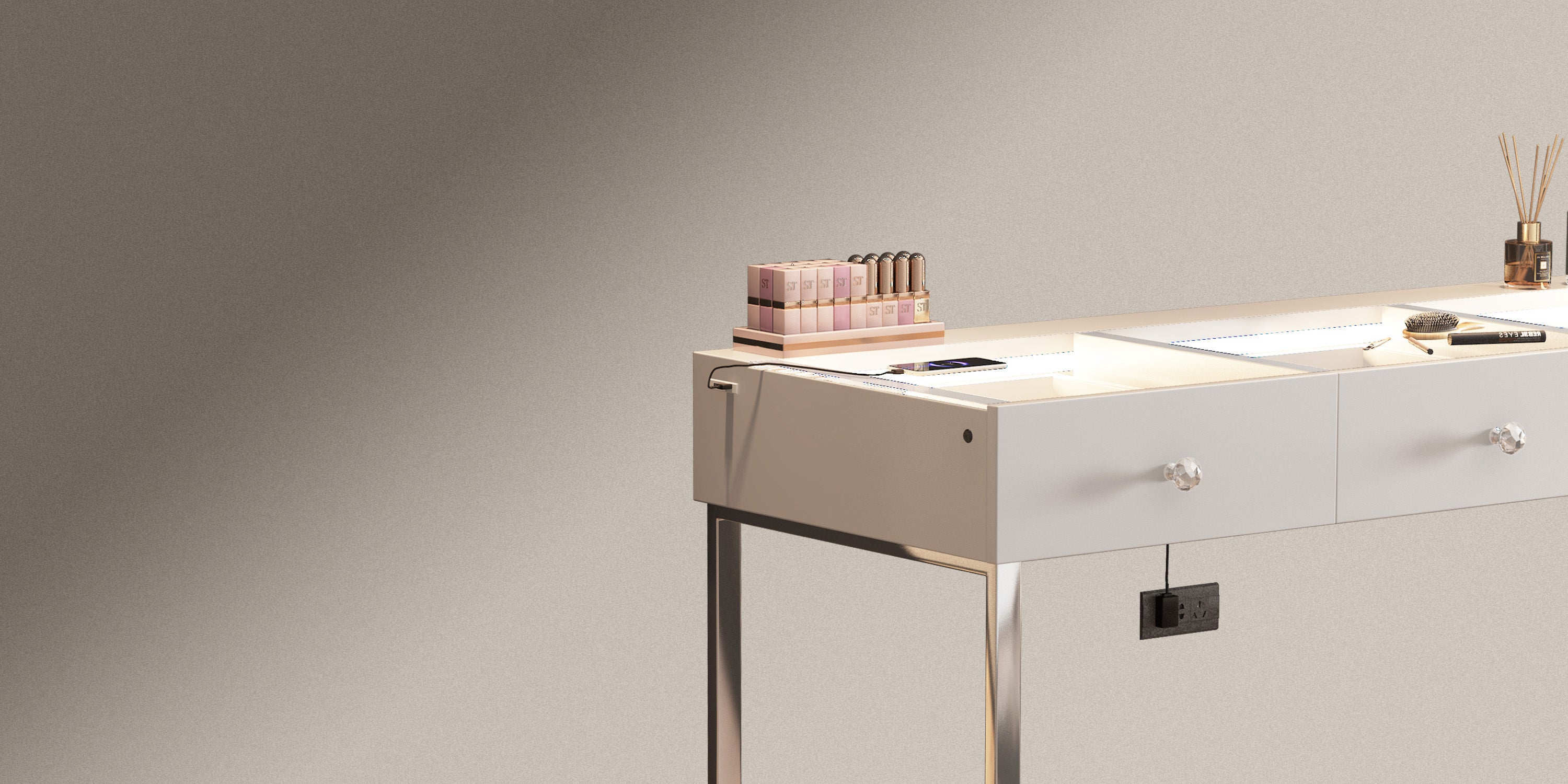 Multi-purpose Storage Drawers – 3 soft close large table drawers to help you organize your accessories.
