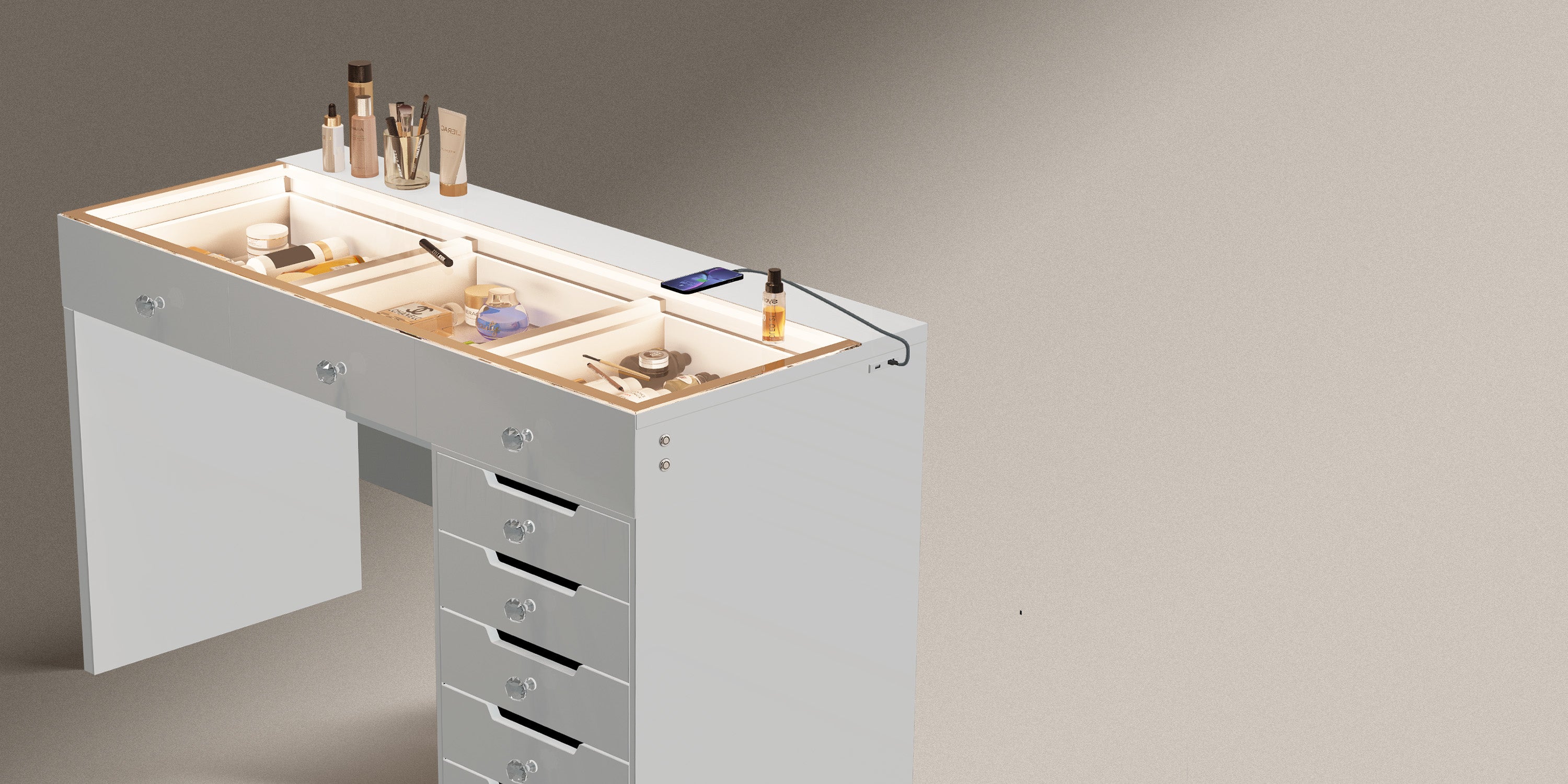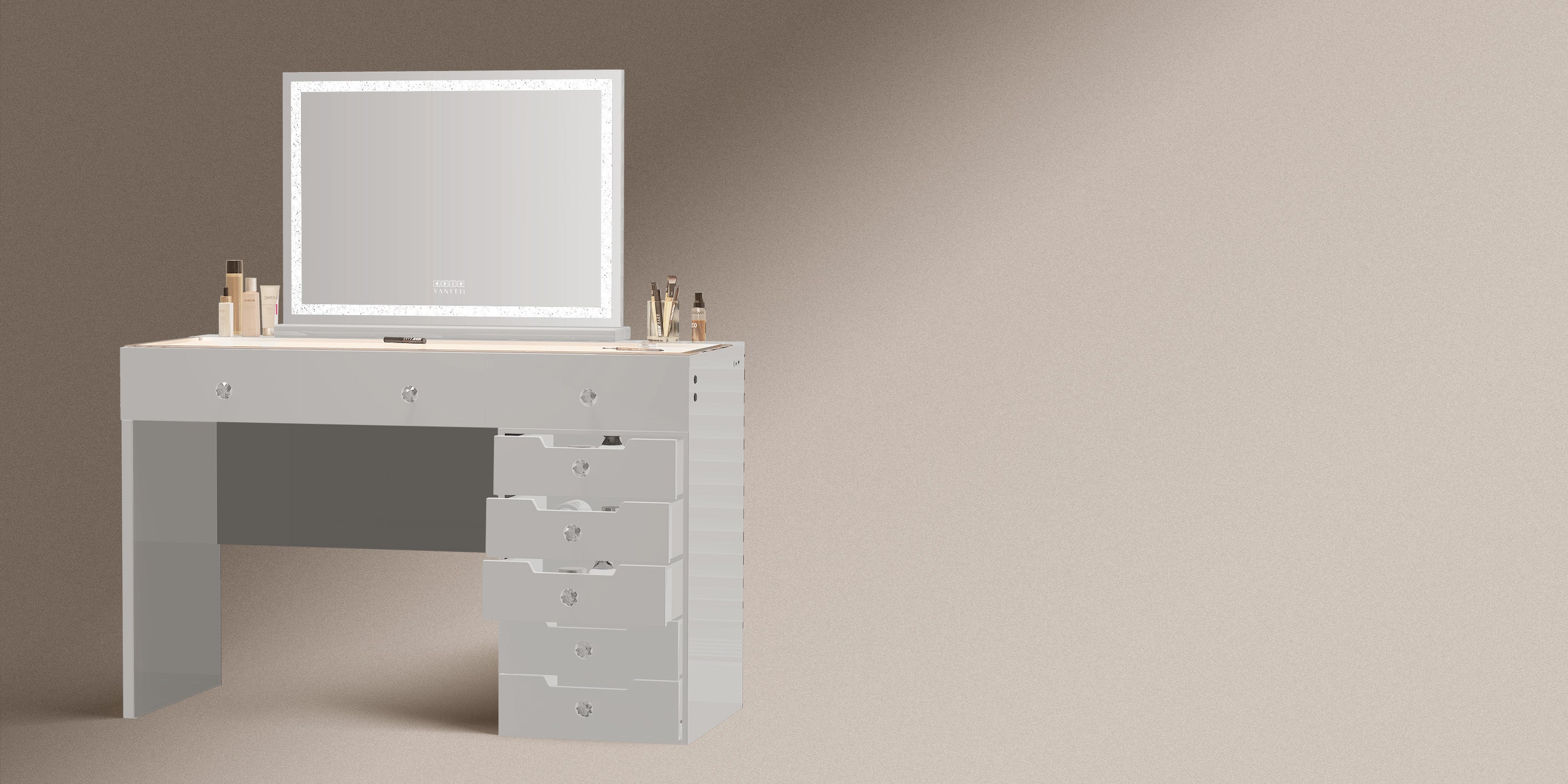 • Makeup vanity desk with 8 storage drawers