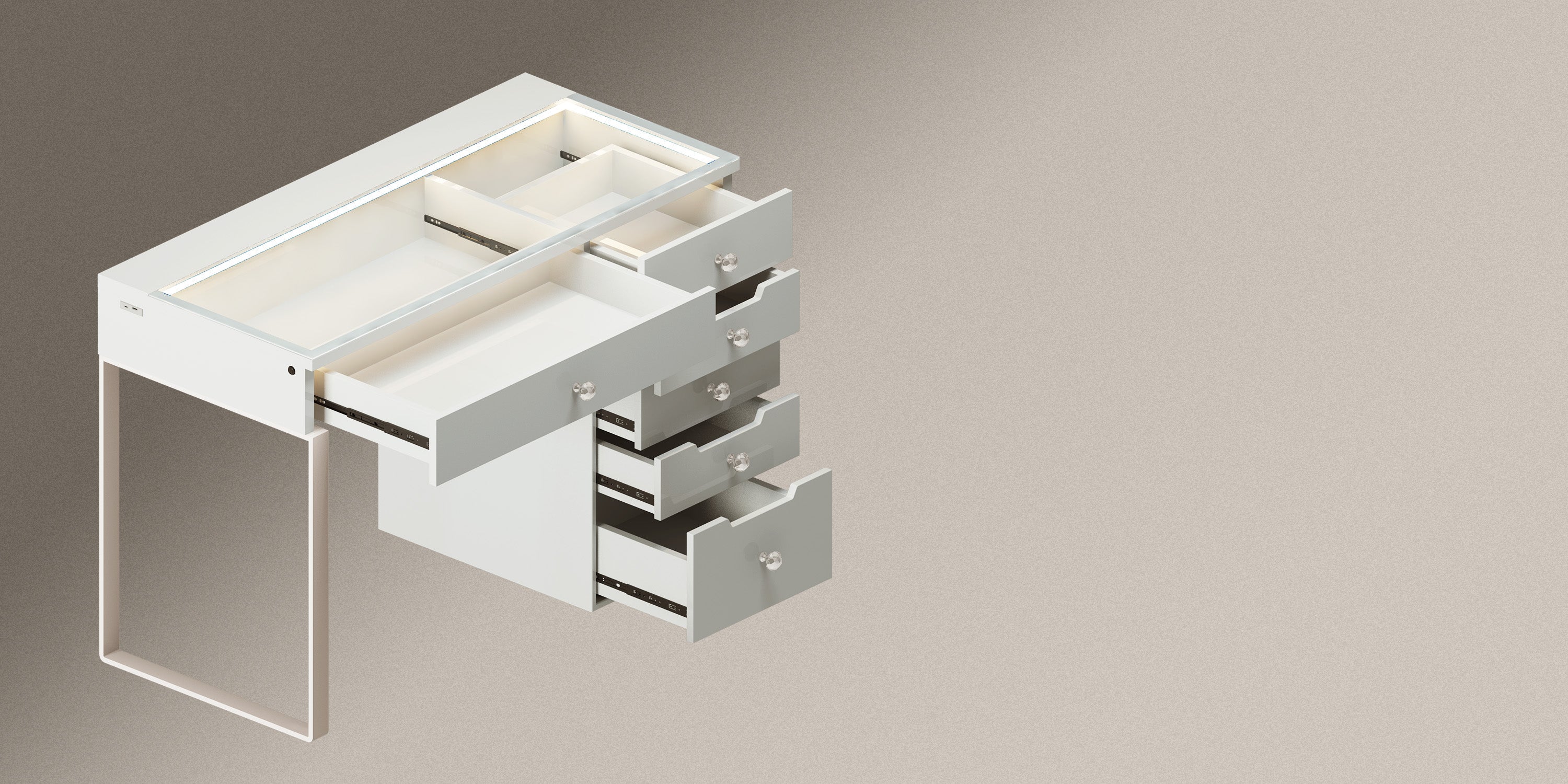 Multi-purpose Storage Drawers – 8 soft close large table drawers to help you organize your accessories.