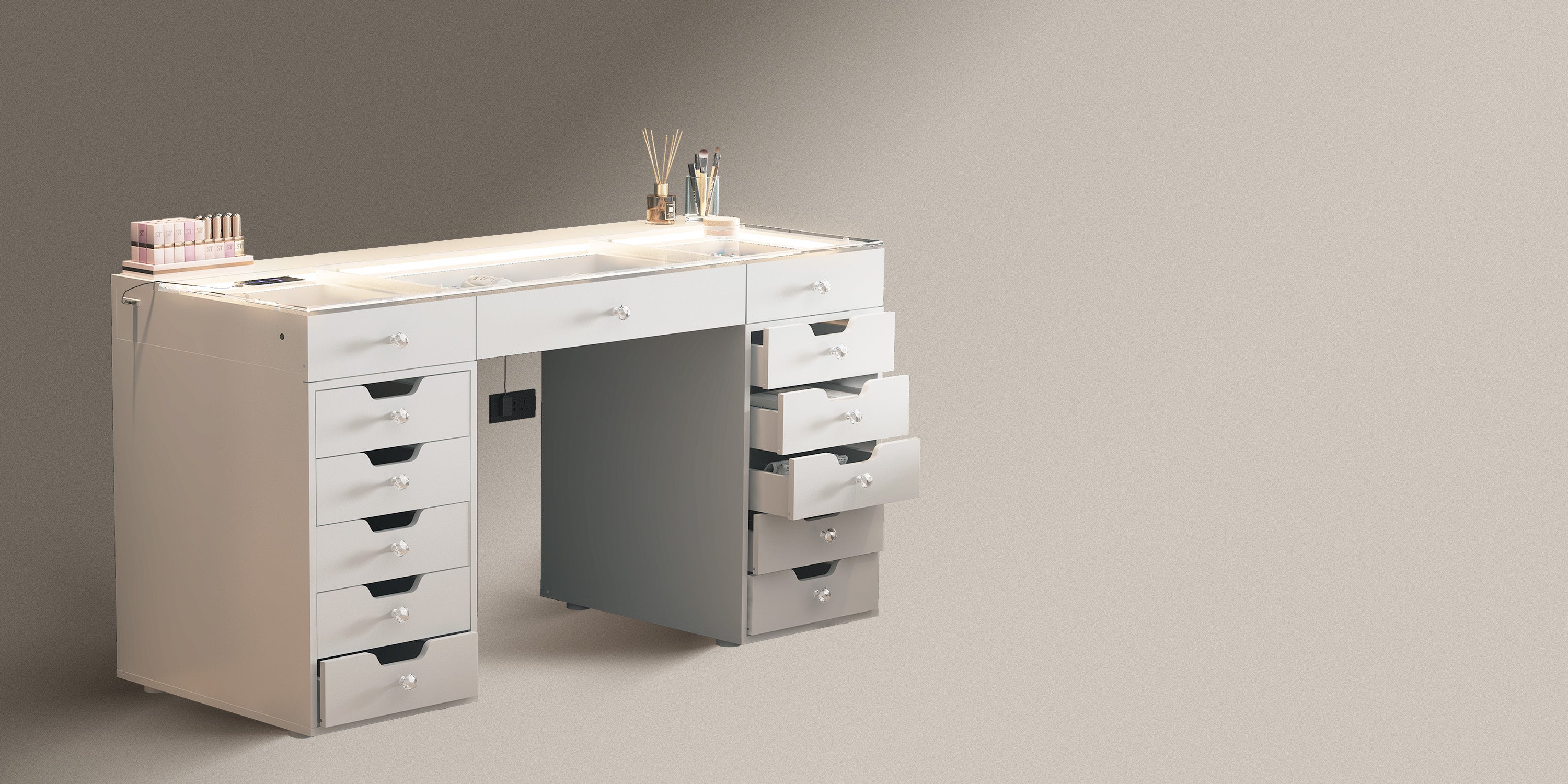 • Makeup vanity desk with 13 storage drawers