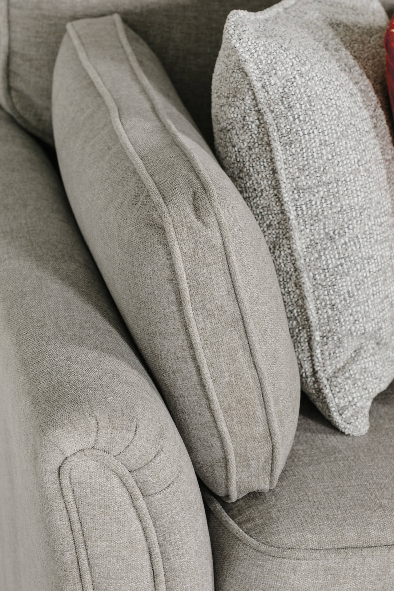 Winnie Corner Group LHF in Natural offers a cosy and stylish seating option with its soft neutral upholstery. Featuring supportive bolster cushions and paired with a mix of plain and patterned scatter cushions, it adds charm and comfort to any living space while blending effortlessly with a range of interior styles.